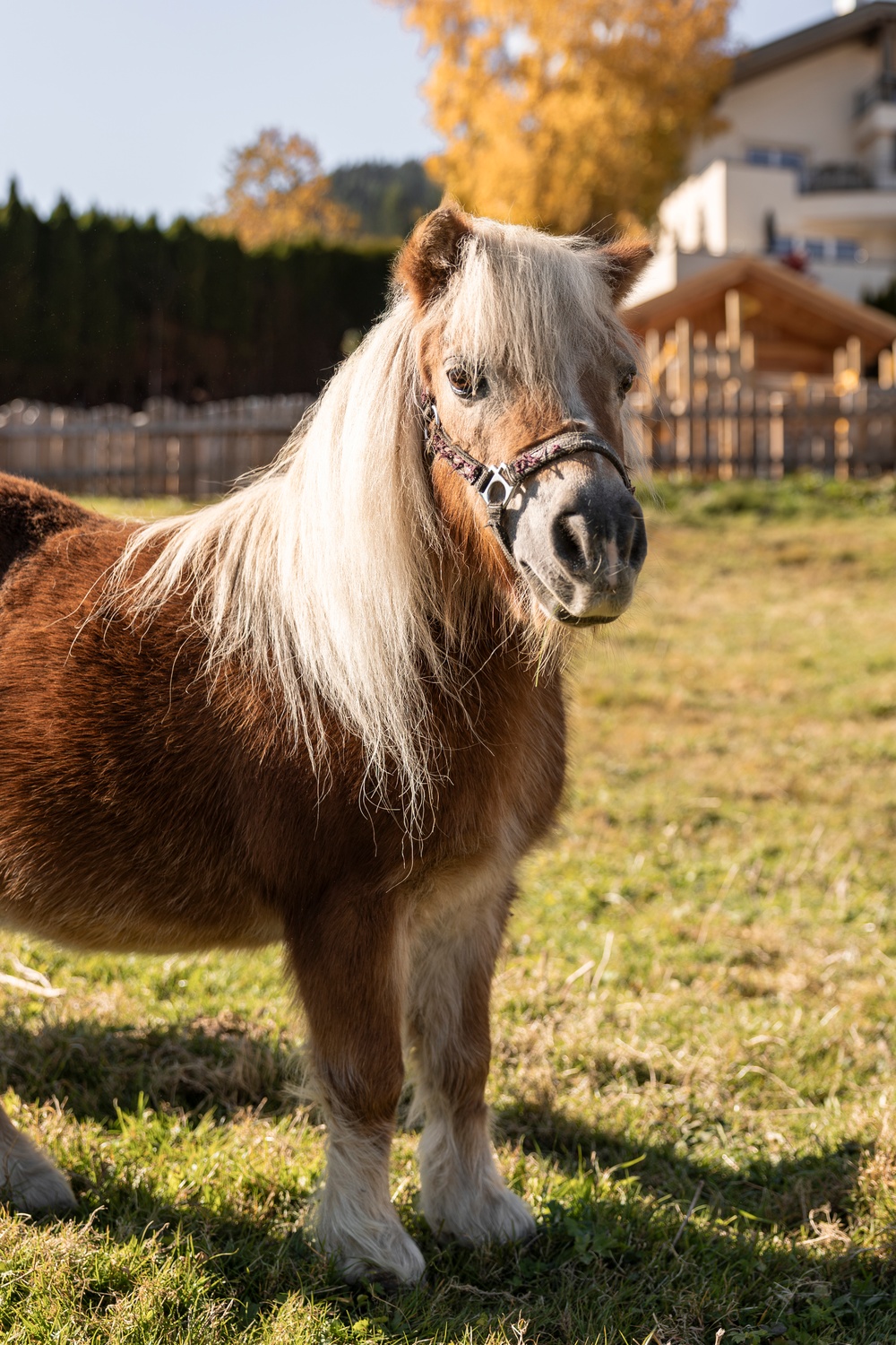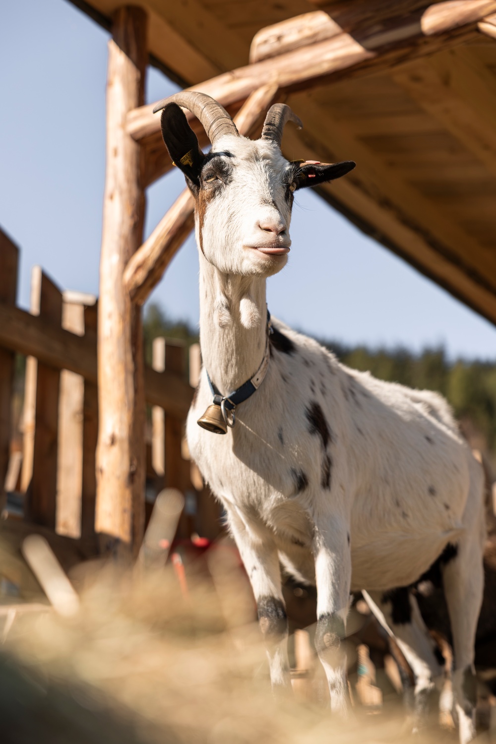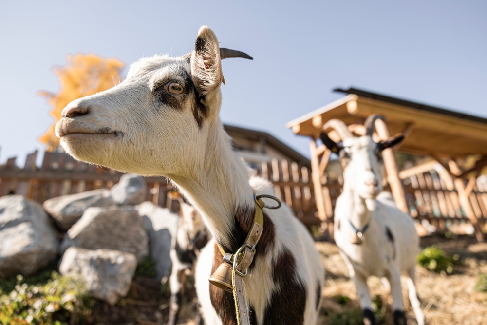 - A lovingly designed animal enclosure with horses, goats, and sheep